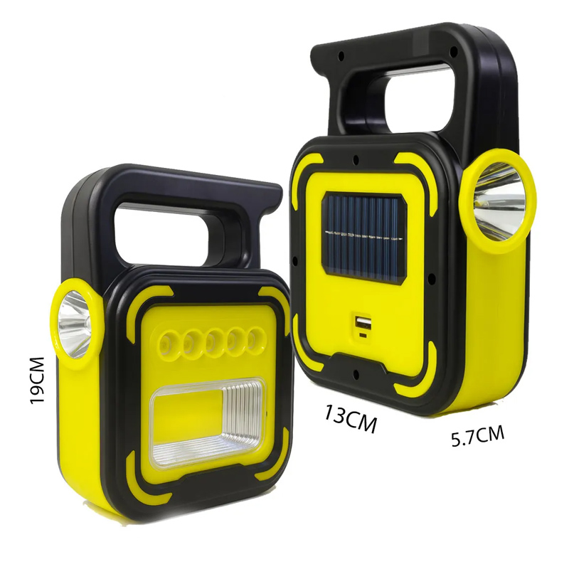 یک وسیله با چندکارایی جالب می باشد. جنس بدنه چراغ کار از ABS و مقاوم در برابر ضربه می باشد. چراغ و پروژکتور اضطراری دارای پاوربانک دارای 4 حالت نوردهی که شامل: چراغ قوه سفید و چراغ قوه آفتابی با  نور زرد و چراغ جانبی قوی COB شش چراغه با نور  قوی و چراغ جانبی کوچک میباشد. چراغ کار چند کاره دارای ویژگی هایی چون: دست گیره، قابلیت شارژ با برق شهری و نور خورشید، و خروجی USB برای شارژ موبایل می باشد.